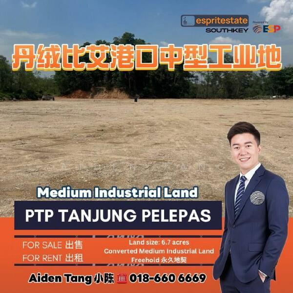 Medium Industrial Land for Sale & RentLocation: i-Parc @ PTP, Port of Tanjung Pelepas, JohorZoning: Medium IndustryTenure: FreeholdAsking PriceTotal Land Size: 6.7 acres• For Sale: RM110 psf• For Rent (Vacant Land): RM0.25 psf (Negotiable)• Built-to-Suit Factory: RM2.50 psf/month(Construction to commence after SPA is signed)Property Highlights• Freehold industrial land• Medium industry zoning – suitable for manufacturing, warehousing & logistics• Built-to-Suit Factory available – customized to buyer/tenant’s specifications• Wide access road for 40ft container & trailer movement• Ready infrastructure: power, water & telecommunication• Strategic location near Port of Tanjung Pelepas (PTP)Accessibility• 5 mins to PTP Port• 15 mins to Tuas Second Link• 20 mins to Iskandar Puteri / Nusajaya• 25 mins to Senai Airport• 30 mins to Johor Bahru CityContact for viewing and more info.Contact Aiden Tang 小陈 at0*****Whatsapp:www.W*****