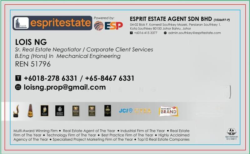 SILC Nusajaya, Johor-Double Storey Detached FactorySubject Property:SILC Nusajaya, JohorCategory of Land:Light IndustryTenure:FreeholdType of Building:Double Storey Detached FactoryLand Area:Approx. 4.338 AcresBuild-up Area:Approx. 245,220 sq.ftPower Supply:3,000 AmpereCeiling Heights:G/F : 5.0 Meter, 1st/F : 8.0 MeterFloor Loading:G/F : 50 kN/m2, 1st/F : 20 kN/m2Selling Price:RM 78,470,400.00 @ RM 320.00 /sfLoading Bays:5 units container loading bayRemarks:Sale with Tenancy 5+5 years (Oct 2024 – Sept 2033)Sale with Tenancy : Heng Sxing Wood Industries Sdn BhdTenancy : 1st Oct 2024 – 30th Sept 2033 (5+5 years)1st year – 5th year : RM 318,786.806th year – 10th year : RM 331,047.84Lois NgIndustrial Specialist0*****