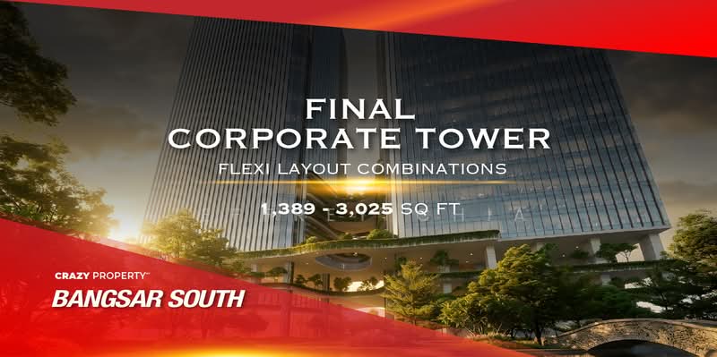 Why Duo Corporate Tower at Bangsar South?-The LAST brand new office tower by UOA-Only 239 strata office units for sales (Tower B), Tower A not for sales own by UOA-MSC Status & GreeRE Certified building-Tallest Office Building within Bangsar South @ 171.6m-Intelligent Security (Facial Recognition access)-Total 11,120 carparkBuilt up:1389 sf- 144units1701 sf - 24 units1755 sf - 24 units3003 sf- 47unitsReserved your opportunity now to own the brand-new last corporate tower with EARLY BIRD DEAL NOW at Bangsar South!!Jeffrey Chia0*****Bangsar South Specialist