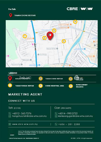 This Property is conveniently situated within a 5-minute driving distance of Cheng Industrial Area, Cheng Bestari, and Puncak Bertam residential area, Super Cowboy and NSK HypermarketA 15-minute driving distance to AEON Bandaraya Melaka, Melaka Sentral Bus Terminal, Melaka City tourist attraction area, and General Hospital Melaka.It is surrounded by various amenities such as retail shops, a petrol station, etc.Kindly contact Mr.Teh (E2103) or Mr.Gan(REN 34599) for more information and arrangement.0*****(Mr.Teh)0*****(Mr.Gan)