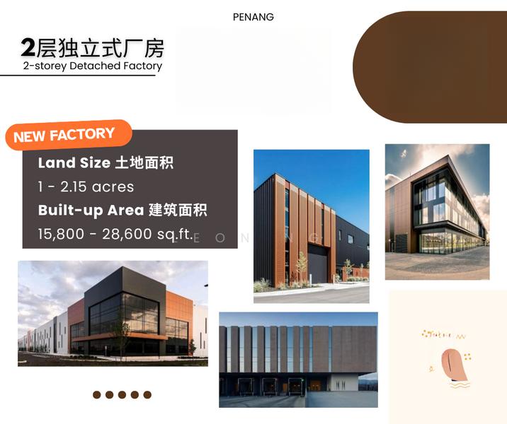 • Land Area: from 1 - 2 acres• Built-up Area: from 15,742 sq.ft +++• Ceiling Height: 30 ft• Electricity Supply: up to 1,200 amp• Floor Load: 2 ton/m²• Few units available• Price: from RM10 million ++• Built-to-suit-Batu Kawan-Please contact for more info :)