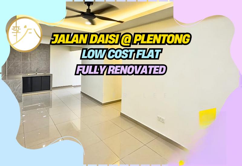 Fully Renovated!!!Nice Condition!!!Nice Location!!!Jalan Daisi @ PlentongLow Cost Flat---For Sale---- Level 5 (Top Floor)- 753 Sqft- 3 Beds & 2 Baths- Leasehold (until 2097)- Fully Renovated- Non Bumi- Maintenance Fee Ard RM50*Under Reno*Photo Just for illustrations, actual unit based on final conditionSelling: RM198kWhole House Full MosaicRenovated with Dry Kitchen and Kitchen CabinetRenovated with Kitchen table topHouse with Clean and nice conditionPlease Contact:Kasper Lee 010.221 3066