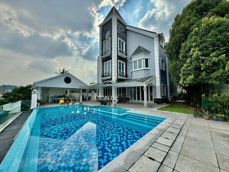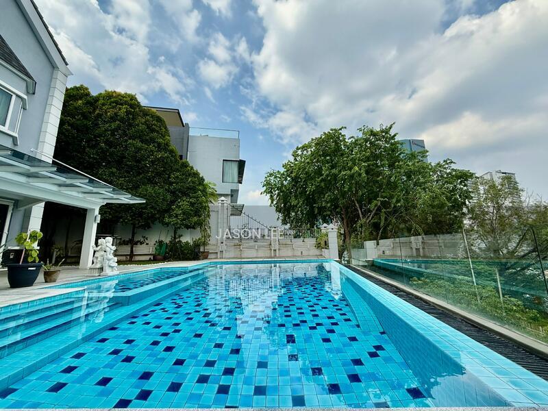 Land Size: 9,700 sqft | Built-Up: Approx. 12,000 sqft (including pool deck) Freehold | Completed 2007 | Major Renovation in 2016 This generously sized and beautifully renovated bungalow is nestled within a tranquil, secured residential area of Damansara Heights, providing exceptional privacy, functionality, and comfort over three spacious levels. Key Features: - Outdoor swimming pool with shower & toilet - Parking for 6 cars - Main door faces North - Dedicated shaft space for future lift installation (above indoor koi pond) - Pseudo rainwater harvesting system - Basement area for open storage (building material/tools) - Fountain timer system Layout Overview: Ground Floor: - Formal living & dining rooms - Dry & wet kitchens - 1 bedroom + powder room - Maid’s room with attached bathroom First Floor: - 6 rooms (5 ensuite bedrooms + 1 home office) - 5 bathrooms Second Floor: - Large studio + attached bathroom (connected to another bedroom) - Private home cinema - Huge entertainment room (linked to master via spiral staircase) - Large storage room Other Spaces Include: - 2 attic studios - Nursery/prayer room - Pantry & dry store - Utility/wash room - Maid's quarters (fits 2 pax) with ensuite - Main hall fitted with piano & TV area Viewings: Weekends preferred – contact to arrange in advance. An incredibly versatile family home with plenty of rooms, lifestyle areas, and thoughtful enhancements throughout.