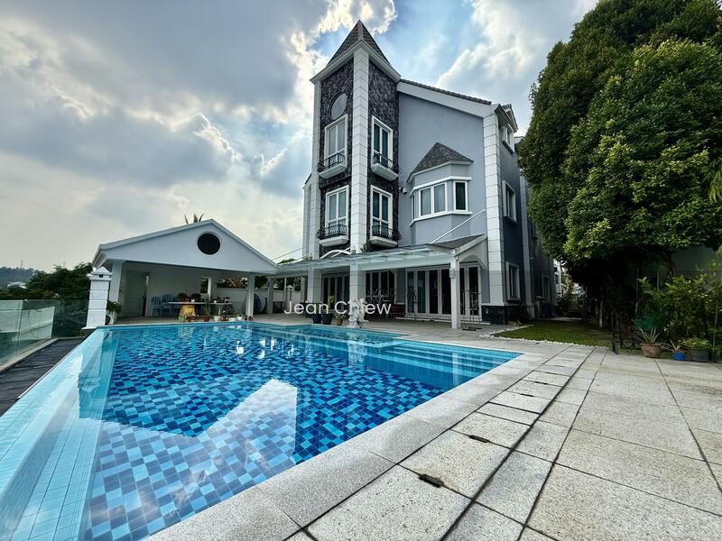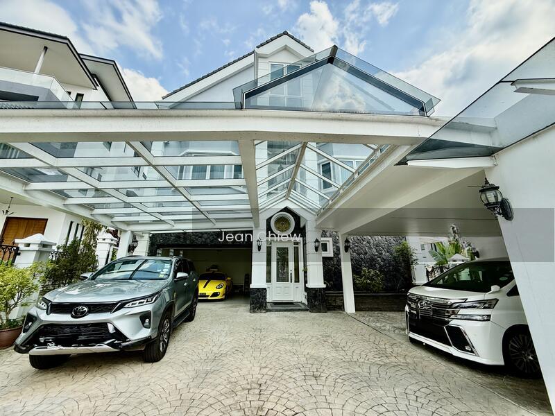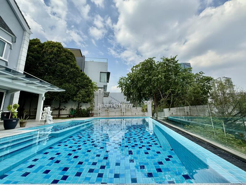Accommodates parking for 5 vehicles. Completed in 2007 and underwent a significant renovation in 2016, which included raising the ceiling height of the entire 3rd floor and the roof. Features an outdoor pool complete with shower and toilet facilities. The basement serves as open storage for building materials and includes pseudo rainwater harvesting. The main entrance faces north, with space allocated for a lift above the fish pond.Ground floor features 1 room, 1 powder room, a maid's room with attached bath, a formal living area, dining space, and two kitchens.First floor consists of 6 rooms and 5 bathrooms, including 5 bedrooms with en-suite baths and an additional room that functions as a home office.The second floor boasts a spacious studio with an attached bathroom, another bedroom, a home cinema, a large storage room, and an expansive private entertainment area connected to the master bedroom through a spiral staircase.Fountain timer set for 5 PM. Weekend viewings are preferred.Freehold property with a land size of 9700 sqft and a built-up area of 12000 sqft, inclusive of the pool deck. Total bedroom count is 7, with 6 en-suite bathrooms.Additional rooms include a home cinema, two high attic studios, a small nursery/prayer room, and a store room.Main hall features a TV and piano, with formal dining, a dry kitchen, a wet kitchen, a Japanese/game room, a pantry, a dry storeroom, a utility washroom, and a maid's room suitable for 2 persons with an attached bathroom.