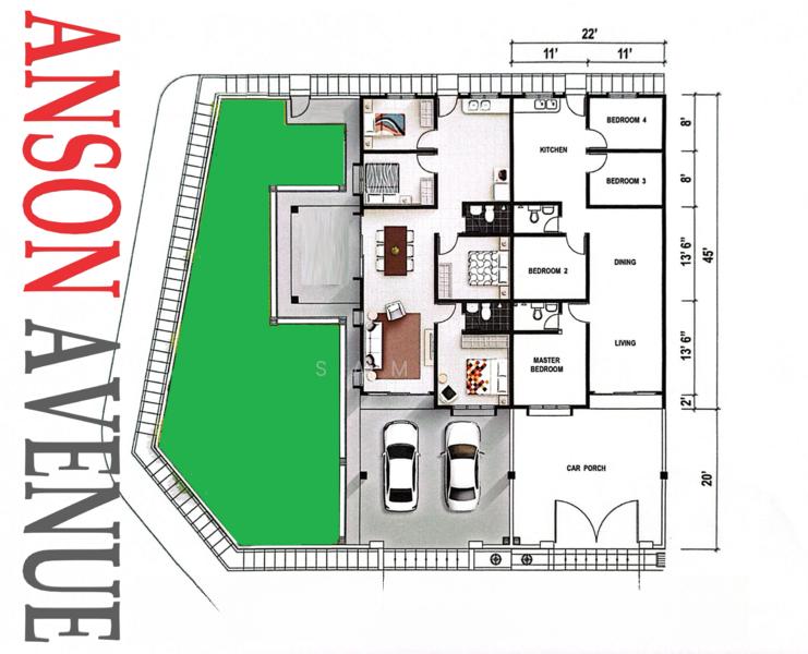 Secure, low density, 22' width, 4 bedrooms, 2 bathrooms, 2 parking spaces....with low density residences, close to new highway access in Teluk Intan Town.