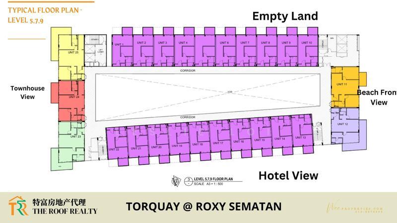 TorQuay @ Roxy Sematan – Beachfront Service Apartments starting from RM352,950Discover the ultimate beachside lifestyle where stunning sunrises, refreshing ocean air, and smart investment opportunities converge.Situated adjacent to Roxy Sematan Beach Resort, TorQuay presents a limited selection of exclusive seaside residences perfect for vacation getaways, Airbnb, and long-term rental returns.⸻Project Highlights:• 169 exclusive units in a 9-storey building• 1 and 2 bedroom configurations with spacious balconies• Unit sizes ranging from 543 sq ft to 1,146 sq ft• Fully furnished – ready for personal use or rental• All units feature balconies and select sea views⸻Facilities & Convenience:• Swimming pool and relaxation deck• Commercial level with shops and services• Dedicated parking area• Short walk to Sematan Beach• Located next to a resort and tourist hub⸻Strategic Location:• Adjacent to Roxy Beach Resort Sematan• Convenient access via Pan Borneo Highway• About a 1-hour drive from Kuching⸻Price & Booking:Starting from RM352,950Booking fee:• RM10,000 (Bank Loan)• RM5,000 (LPPSA)Free SPA and legal fees for loans includedStrong rental demand for both short and long staysExpected completion between 2026 – 2028 (by phase)⸻Fully Furnished Package Includes:Air-conditioners, sofa set, television, beds, wardrobes, curtains, dining set, complete kitchen cabinets, refrigerator, washing machine, cooker hood, water heaters, and lighting.⸻Ideal for:• Holiday home purchasers• Airbnb and homestay investors• Long-term rental income• Capital appreciation in a developing resort area
