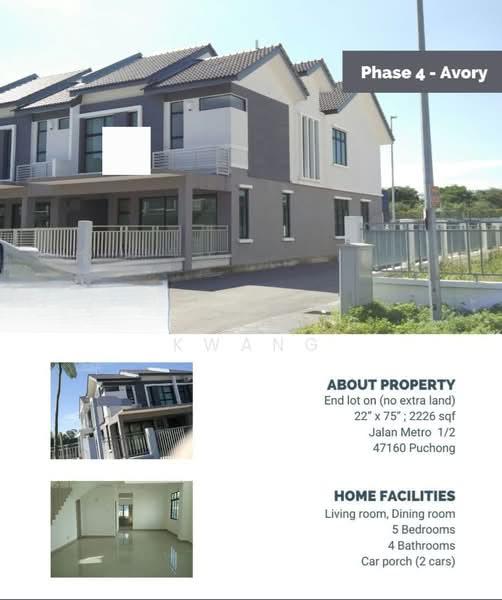 Rm928k onoDiscover your dream home with this beautiful 5 bedroom, 4 bathroom terraced house for sale, available now! Spanning 2226 sqft, this property is nestled in the sought-after Lakeside Residences, Jalan Perindustrian Puchong, Bandar Metro Puchong. Nearby amenities include Tapak Baru SJKT Castlefield (0.7 km) and SJK(C) Poi Min (1.0 km), ensuring that your family has access to quality education. The project boasts fantastic amenities such as a swimming pool, jogging track, playground, and 24-hour security for your peace of mind. Inside the unit, enjoy the benefits of a balcony, security guard service, and covered car parking. This stunning home is perfect for families looking for a vibrant community with easy access to everything you need. Don't miss the opportunity to make this house your new home today!