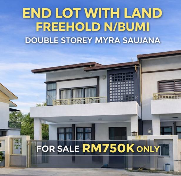 END LOT WITH LAND | DOUBLE STOREYMYRA SAUJANA, DENGKIL – NEAR PUTRAJAYA.Asking Price: RM748,000Myra Saujana.PROPERTY HIGHLIGHTSEnd Lot | 2 Storey TerraceFreehold | Non-Bumi4 Bedrooms | 4 BathroomsBuilt-up: 2,337 sq ftLand Area: 1,960 sq ft (22’ x 70’)Extra Land: 6.5’ x 70’ (rare for terrace)Fully GrilledBasic Unit | TenantedFacing North.AMENITIESPlaygroundGated & Guarded CommunitySK Desa PinggiranSK Desa PutraAlamanda Shopping CentreHospital Serdang / PutrajayaIOI City Mall.AccessibilityFederal RoadDengkil–KLIA Bypass.For More Info / ViewingShahrul AkhirWhatsApp:www.h*****