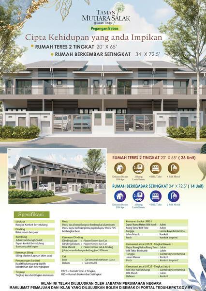 Freehold Teres 2 Tingkat @ Taman Mutiara Salak, Salak Tinggi.Harga Bermula RM499,000Kawasan Bebas Banjir, Sistem Perparitan Baik dan 26 units buah Semi D sahaja..Pegangan BebasRezab Melayu, Geran IndividuLuas Binaan 1980sfLuas Tanah 20x654 Bilik Tidur 3 Bilik AirDijangka Siap June 2027.ZERO DOWNPAYMENTFREE SPA LEGAL + DISBURSEMENTFREE MOT STAMP DUTYFREE KABINET DAPUR BERNILAI RM5000.Berdekatan dgn Sekolah, Masjid, Kedai Runcit & Kedai Makan10min ke Kota Warisan, KIP Mall15min ke KLIA20min ke Nilai30min ke Putrajaya & Cyberjaya.Shafiq Chua (Sales Manager)www.w*****