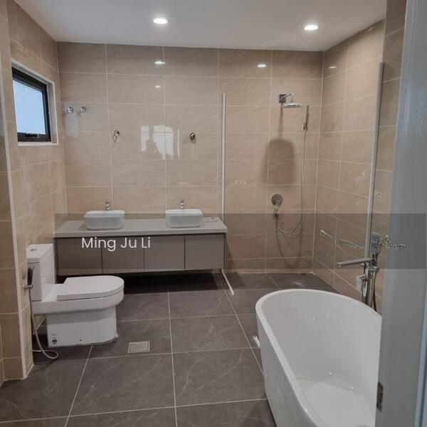 Ukay Heights @ Ampang house for Sale- Double Storey Terraced House, Corner Lot- Freehold- Land Size: 3421 sqft- Built-Up Area: Approximately 3218 sqft- Condition: Newly Renovated with high-end finishes, move-in ready- Furnishing: Partly Furnished- Car Park: Fits 3 cars- 3 Bedrooms- 3 Bathrooms- Master Bedroom: Equipped with a luxurious bathtub and premium bathroom fixtures- Kitchen: Luxury modern kitchen outfitted