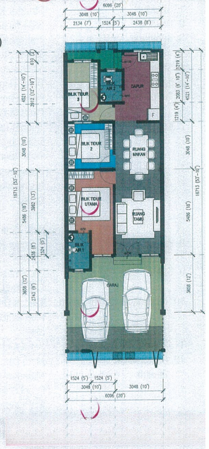 17 single-story terrace houses are available for sale. Each house has a land area of 20' x 60'. The expected completion date is September 2023. The property is Malay Reserved Land. The houses are built with reinforced concrete structure, clay or concrete brick walls, and concrete tile roofing. Finishes include plaster ceiling, aluminum windows, and panel doors for bedrooms, kitchen, and the main entrance. Flooring consists of ceramic tiles in the car porch, bedrooms, living, dining, kitchen, bathroom, and master bathroom. The bathroom walls have ceramic tiles up to 9' and the remaining walls are plastered and painted. Bathroom fixtures include two toilets, two showers, and one sink. Electrical fittings include 15 light points, 10 power points, a switch panel, and 5 ceiling fan points. The front fence is 5' high concrete and the back fence is chainlink with a gate.