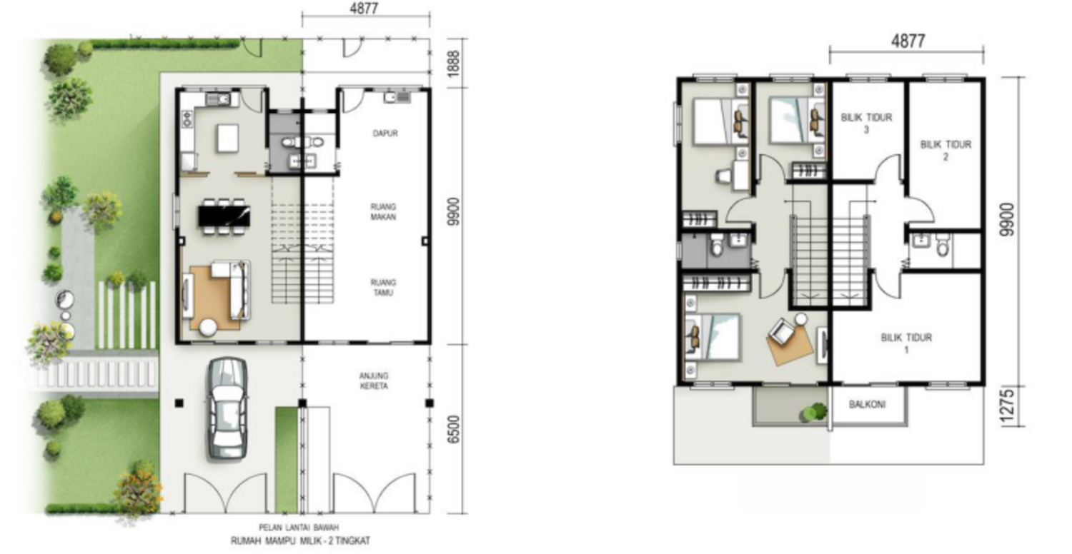 Taman Bukit Tambun Perdana 2 offers 2-storey terrace houses with a land size of 16' x 60' and a built-up area of 1153 sqft. It features a concrete frame structure, concrete walls, and a concrete tile roof. The property includes amenities such as a car porch, gated fence, and is located near various amenities. It is expected to be completed by January 2025.