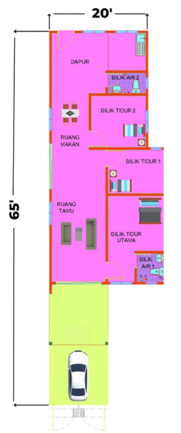 This is a 99-year leasehold single-storey terrace house located in Felda Sungai Retang, Jerantut, Pahang. The expected completion date is July 2025. This property has three bedrooms, two bathrooms, and a car park. The built-up area is 1300 Kps. This property is developed by Kmdi Holding Sdn Bhd.
