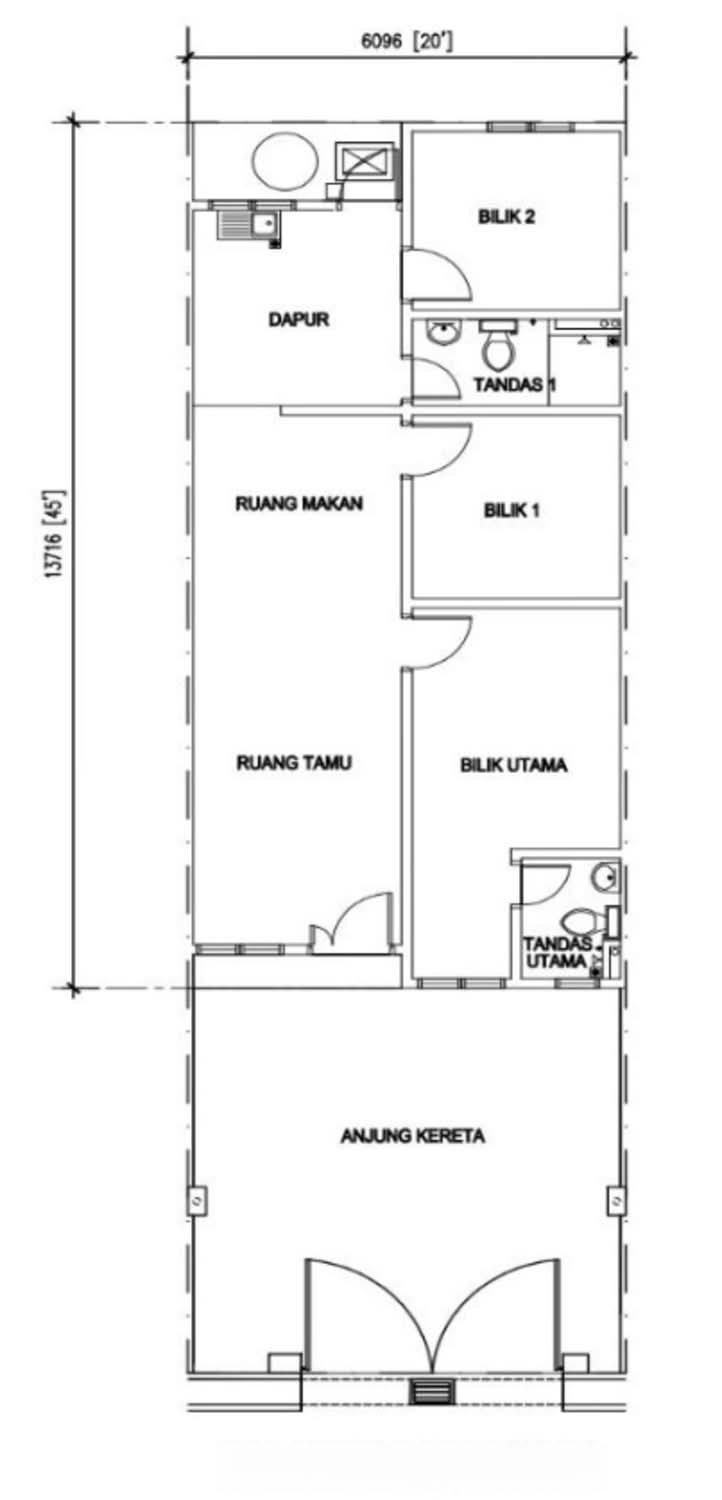 26 units of single-story terrace houses are available in Taman Berembang Indah. The houses feature reinforced concrete frames, brick walls, concrete tile roofs, and ironwood ceilings. Aluminum windows with glass panes, wooden main doors, PVC toilet doors, and plywood doors are installed. Local locks, emulsion paint, and ceramic tiles are used for flooring in the kitchen, bathroom, bedroom, living room, and dining area. Cement flooring is used elsewhere. Wall tiles are installed up to 5 feet in the kitchen and bathrooms, and cement is used in other areas. Sanitary fittings include two toilets, two hand wash basins, two showers, and one aluminum sink. Electrical fittings include eight 13 AMP power points, nine light points, and four ceiling fan points. The houses have a 5-foot high chain-link fence.