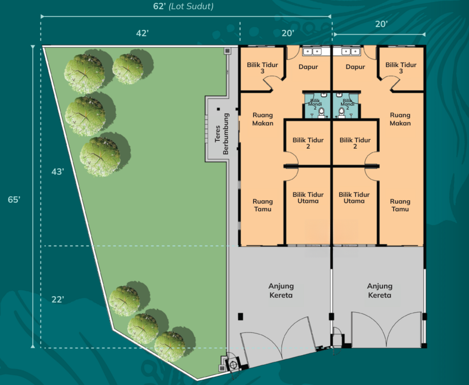 This development offers single-storey terrace houses in a strategic location in Perak. It is close to various amenities such as schools, hospitals, banks, and supermarkets. The houses have a land size of 20' x 65' and come with a range of modern facilities.