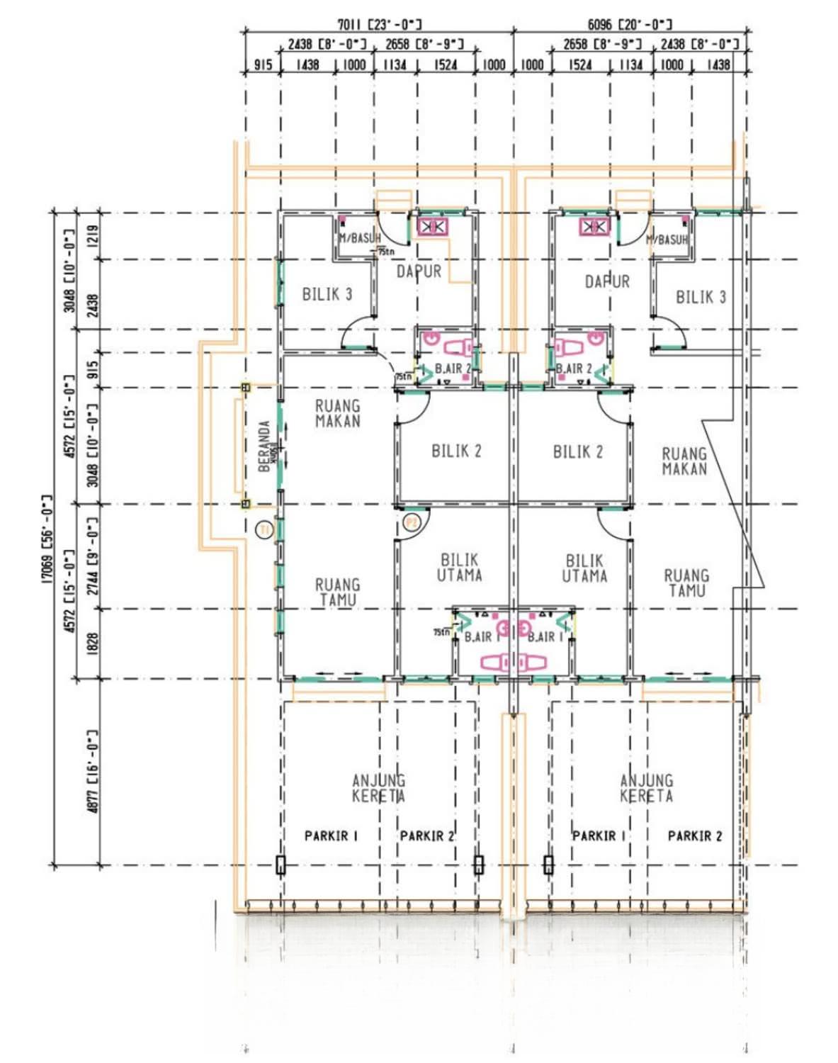 Single-story terrace houses are available for sale. These houses include amenities such as a clinic, university, and polytechnic. Land size is 130 square meters and built-up area is 1023kps. They feature reinforced concrete structure, white brick walls with cement plaster, and concrete tile roofing. The ceiling is finished with plaster, while the flooring consists of 20-inch by 20-inch mosaic tiles indoors and imprint in the parking area. Doors are wooden, and bathroom doors are folding plastic toilet doors. Windows are tinted glass with silver aluminum frames.