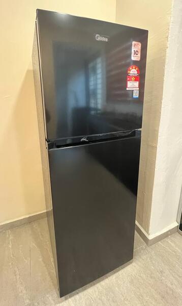 Refrigerator, washing machine, sofa, dining table, dining chairs x4